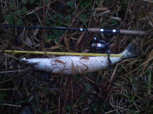 Nach 5 min tauziehen hatte ich es dann geschafft und ein 71cm langer Hecht lag vor meinen Füßen .