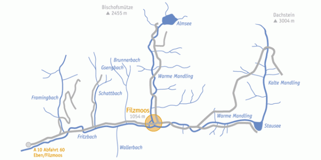 Es gibt das natürlich wieder mal nur im Salzburger Land, in Filzmoos - im Hotel Hubertus bei Johanna Maier. Zum angeln stehen die warme und die kalte Mandling sowie der Fritzbach zur Verfügung. Man kann auch im wild romantischen Almsee auf Saiblingspirsch gehen. Die Gewässer stehen nur Hotelgästen zur Verfügung und sind dementsprechend exklusive Fliegengewässer. Die Tageskarte kostet für Hotelgäste 55 Euro.