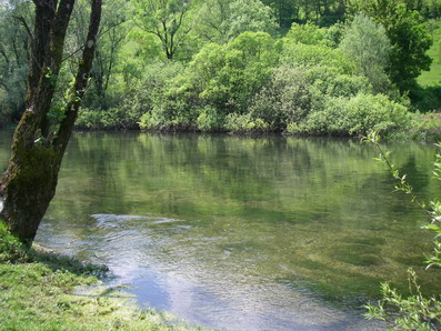 Den Fluß Ribnik möchte ich als ca 20m breiten und 40-70cm tiefen Bach oder Fluß beschreiben wenig strukturiert doch mit viel Unterwasserpflanzen bestückt.Voll überbesetzt an Äschen und Bachforellen er ist nur mit Nymphe und Trockenfliege zu befischen.
