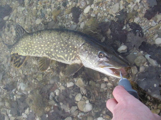 Glücklicherweise war er schön im Maulwinkel gehakt und der Haken löste sich von selbst als die Schnur locker wurde, da ich ja ohne Widerhaken fische. So musste ich ihn nicht mal angreifen. Schnell noch ein paar Fotos und er durfte wieder schwimmen.
