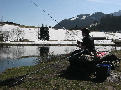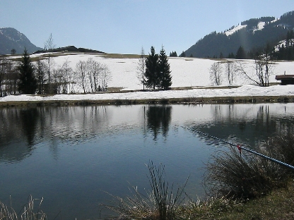 Ziel waren die Bichlacher Angelteiche in der Nähe von Kössen. Wie immer lag um diese Zeit noch 'ne Menge Schnee - aber direkt an den Teichen war schon alles frei.