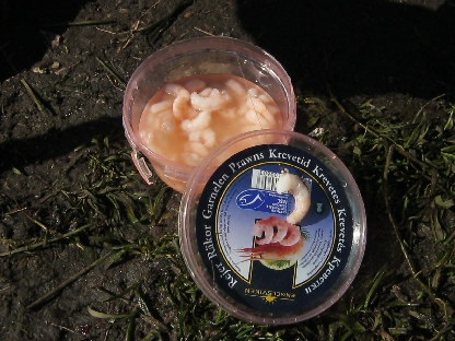Neben Mais und Mistwürmern probierten wir es dieses mal auch mit Garnelen aus dem Supermarktregal - hat sich an diesem Tag als Topköder erwiesen.