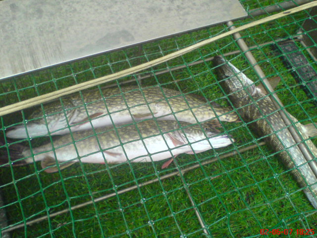 Ich jedoch konnte "nur" 3 mittlere Hechte fangen, die jeweils auf einen 23 cm großen blau-weissen Gummifisch bissen.