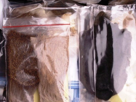 Die Bälge für Trockenfliegen kommen hauptsächlich aus dem Nackenbereich (Dry Fly- Neck), bzw. aus dem Sattelbereich der speziel dafür gezüchteten Hähne.