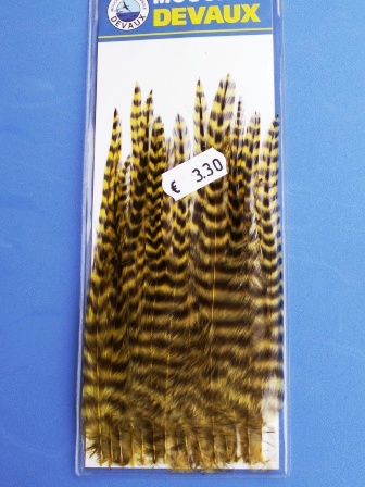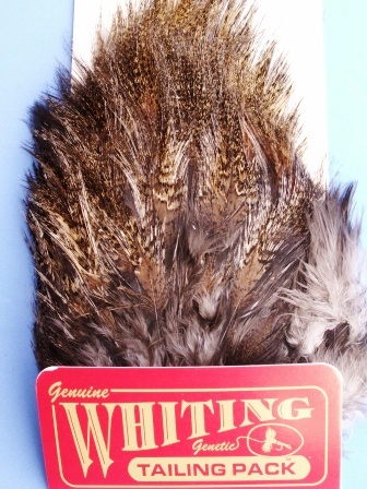Die Bälge für Trockenfliegen kommen hauptsächlich aus dem Nackenbereich (Dry Fly- Neck), bzw. aus dem Sattelbereich der speziel dafür gezüchteten Hähne.