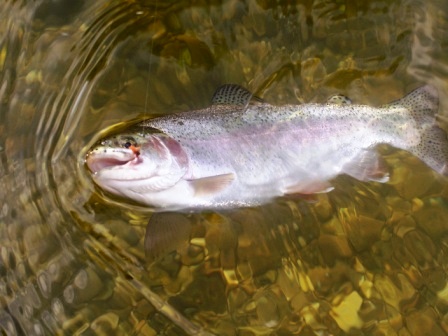 Urplötzlich jedoch keine 10m von dieser Stelle entfernt schoss eine Sehr stattliche Regenbogenforelle