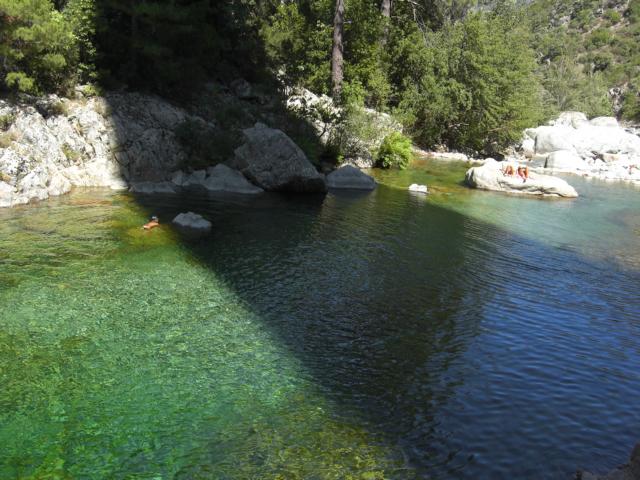 Sehr beindrucken sind immer wieder die Gebirgsbäche wo wir einige besucht habe und spez. im Oberläufen wunderschöne Gumpen mit schönen Fischen sind. Ich habe so einige schöne kapitale Forellen gesehen, ebenfalls habe ich einen schönen Aal bewundern dürfen und das sehr weit im Landesinneren..... Wer Fliegenfischen mag findet hier sicherlich traumhafte Reviere spez. wenn man bereit ist ein bisschen zu klettern... Aufgrund der Höhe der Berge führen die Bäche auch in trockenen Sommer nocht genung Wasser, sodass Fischen und baden super möglich ist! Natürlich kann man auch toll wandern, von Corte (der heimlichen Hauptstadt) führen tolle Wandertouren weg die jedes Wanderherz höher schalgen lassen. Im März kann man dort übrigen sehr schöne Schitouren unternehmen...
