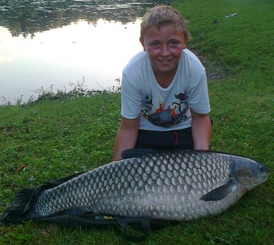 Auch dieser Amur mit 20 Kg und einer Länge von 105 cm wurde von dem Jungfischer aus dem karlsbader Weiher gefangen. Das der Weiher verkrautet ist weiß man, trotzdem lassen sich schöne Fänge erzielen.