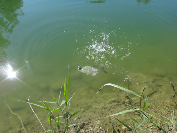 Dabei sah ich wie einer sein Futter vor sich ins Wasser schmeißt, gerade mal 2 m vor dem Ufer.
