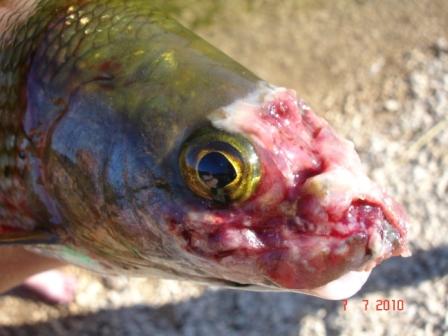 Und das zahlreiche Fische darin erkrankt sind, bzw. verendet sind.