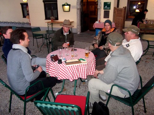 Der Nachmittag wurde von den meisten natürlich noch zum angeln genutzt, wobei noch so manche Forelle herging. Ab 16 Uhr versammelten sich die meisten Fischer wieder in der Überfuhr wo es zuerst im Garten und dann beim Fliegenbinden im Saal noch hoch herging.