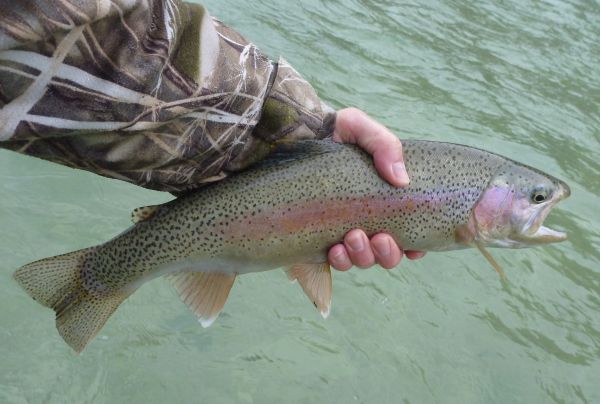 Der Dritte im Bunde konnte allerdings mit der Zweihandrute ein paar schöne Forellen fangen und mit einer 55er auch eine richtig dicke.