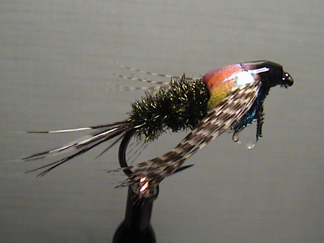 Kommentar: Worin die enorme Fängigkeit dieser Nymphe liegt. Man weiß es nicht. Vielleicht am hellen Schaumstoff-„Chitinpanzer“, vielleicht auch an den überlangen Beinen die im Wasser bei richtiger Führung dem Muster viel Leben vermitteln.