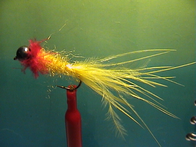 Körper: Dubbing, gelb od. gelbes Chenill fein od. olivegrün