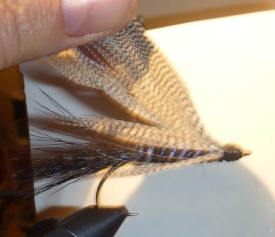 Ich bestreiche auch ganz gern die Federn nach dem Binden einwenig mit Lack und "zerreibe" sie dann ein bisschen zwischen den Fingern. Die Fliege sieht damit zwar nicht besser aus, aber ich bilde mir ein, dass sie dadurch noch etwas besser im Wasser spielt, weil die Fibern mehr schwingen ...