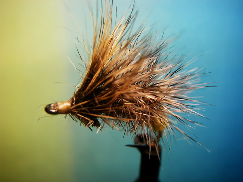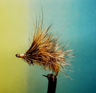 Kommentar: Ein abgeändertes Muster aus der Zeitschrift „Fliegen Fischen“ August/Sept.2007 Seite 44-47 (Paraloop Buck Caddis)