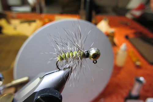 Nach dem Mittagessen nahm die Binderei dann schön langsam Fahrt auf und so entstanden im 15min Takt sehr schöne Exemplare der verschiedensten Fliegen und Nymphenarten.