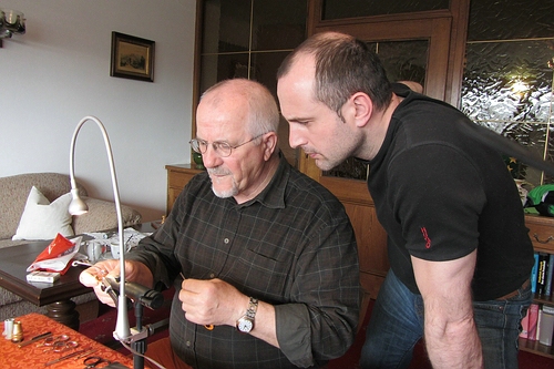 Immer wieder griff unser Lehrmeister behutsam in das Geschehen ein sollte ein kleiner Flügel, die Hechel usw usw. nicht auf den Millimeter genau passen.