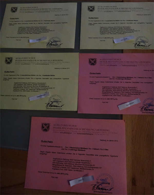 Zu Gewinnen gibt es 3x Tageskarten für Fließgewässer oder Teiche der Peter-Pfenninger-Schenkung Liefering