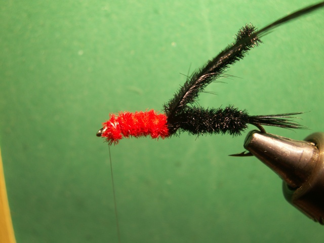 Das Chenille sowie der Kopf wurden mittels Superkleber gesichert um die Fliege noch haltbarer