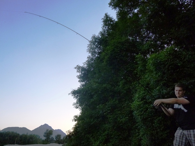 Aber der Drill hat dafür das Foto des Tages beschert: Robi hochkonzentriert und völlig überfordert beim Drillen.