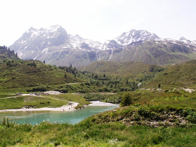 So packten wir unsere Sachen aus den Autos und fuhren mit dem Wanderbus hoch zum Spulersee welcher auf 1829m liegt.