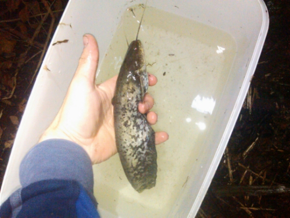 Gegen 23 Uhr wurde es dann auch richtig kalt. Der Nebel der vom See reinzog brachte satte 9 Grad mit sich. Aber wir blieben noch bis 1 Uhr sitzen. Mein Kollege hatte noch das Glück und konnte einen schönen 60cm Aal fangen.