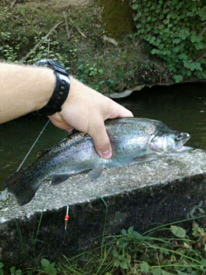 Dort angekommen fing ich nach nichtmal 5 Minuten die erste 35er Regenbogen auf Wurm.
