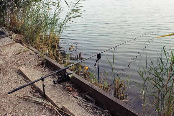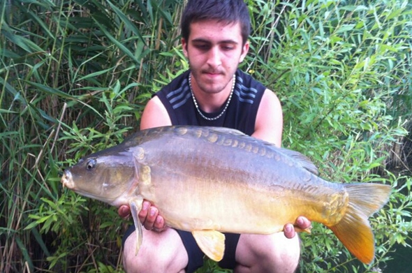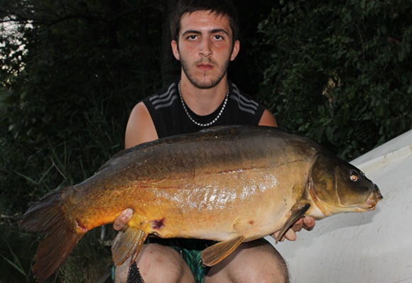 Gegen 17 Uhr traf ich mit meinem Freund Emre, der mich beim Fischen begleitete. Zuerst wurde der Platz „Die Zunge“ angesteuert, Doch Fischaktivität war hier Fehlanzeige, zwar hatte ich ein paar Piepser, doch es waren nur Schnurschwimmer. Also ab zum altbewehrten Platz: zum Steg direkt unter der Hütte. Montagen wurden neu ausgeberacht und Boilies großflächig verteilt. Zwei Stunden vergingen ohne jegliche Aktivität. „Es muss was geschehen“, dachte ich mir und füllte gecrushte Boilies in einen PVA-Sack und tauchte den ganzen Beutel in den Dip, damit er sich mit Flavour ansaugte. Als ich die Montage mit dem PVA-Beutel ausgebracht hatte, dauerte es keine zwanzig Minuten und schon schrie der Bissanzeiger um Hilfe. Zum Vorschein kam ein kleiner netter Spiegler, der ziemlich spritzig im Drill war. Fast wie eine Forelle :mrgreen: