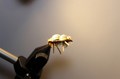 Am Tag daruf hab ich mich daheim dann hingesetzt und nachtürlich verucht so einen Käfer nach zu binden. Das Ergebnis seht ihr ja auf den Bildern. Am Samstag war es dann endlich soweit ich konnte den Käfer ausprobieren. Da ich wissen wollte wie gut er fängt hab ich ausschlieslich damit gefischt und was soll ich sagen, Top!!