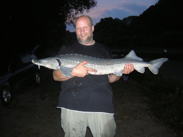 Nach kurzer Zeit durchbrach die riesige Schwanzflosse eines Störes die Wasseroberfläche