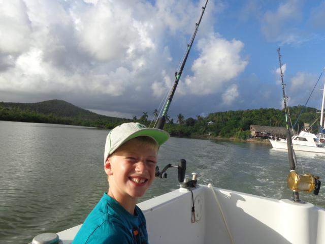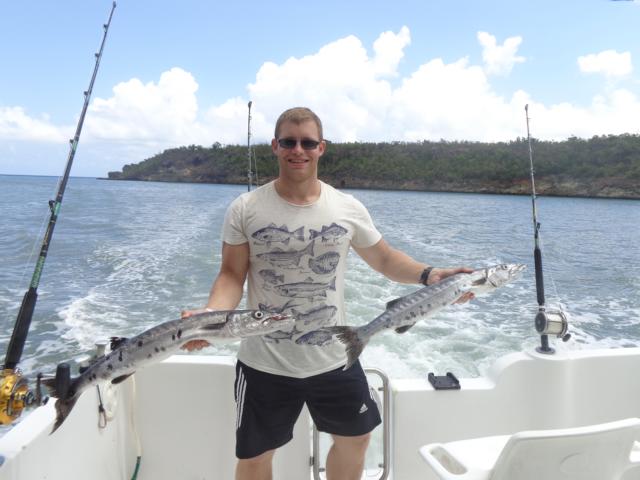 Weitere 30 Minuten später kam der nächste Biss, dieses mal durfte der kleine mit an die Angel und wieder war es ein Barracuda der hunger auf den geschleppten Plastiktintenfisch hatte.