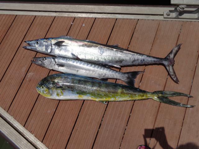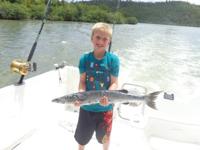 Weitere 30 Minuten später kam der nächste Biss, dieses mal durfte der kleine mit an die Angel und wieder war es ein Barracuda der hunger auf den geschleppten Plastiktintenfisch hatte.