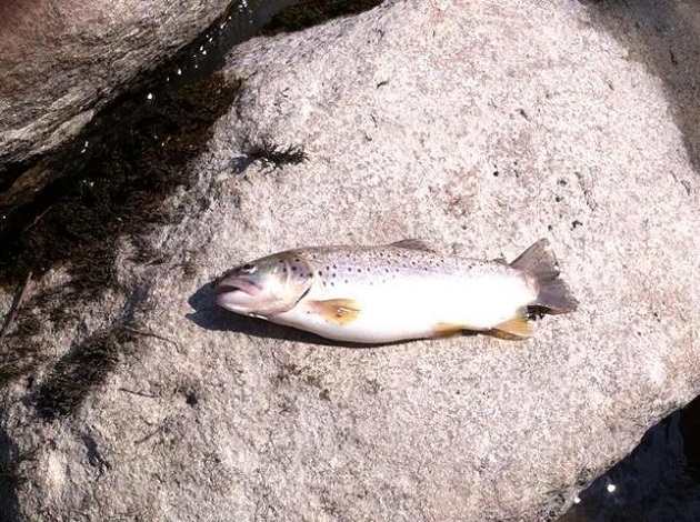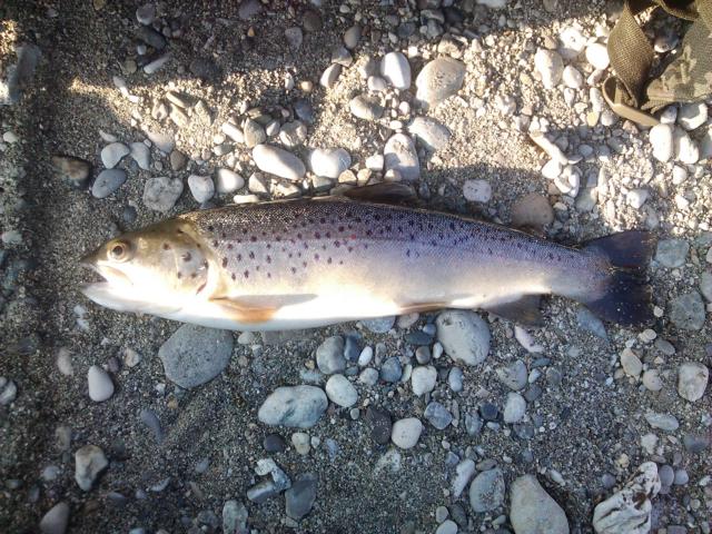 Doch die Fische wollten nicht so richtig und so konnte ich innerhalb von 3 Stunden nur eine 37 Bachforelle verhaften. Als Beifang zeigten sich dort eine Äsche mit ca. 25cm und ein Seesaibling mit ca. 15cm.