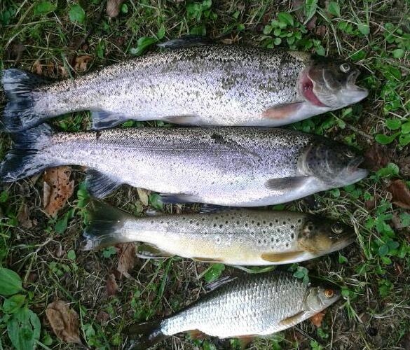 Dann fingen die Forellen wieder an zu beißen und wir konnten noch 4 Stück mit 27-37cm fangen. 2 Davon mussten wir aber wieder zurücksetzen, da man nur 3 Salmoniden entnehmen darf.
