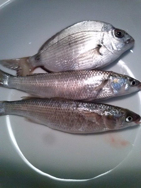 Als wir nach ein paar Tagen auch mal Abends angelten erwischte ich zum erstaunen aller, eine Meeräsche mit ca. 30cm .