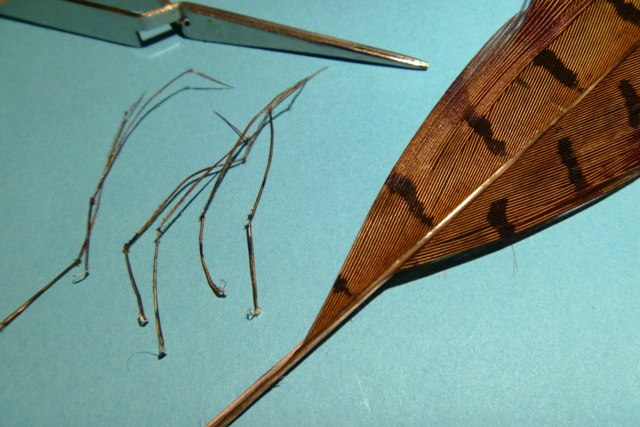 Die Federn des Chinabalges zur Herstellung der Flügel sowie die Beine haben