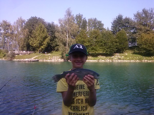 Nach kurzer Zeit bis eine wunderschöne Regenbogenforelle auf den Power Bait.