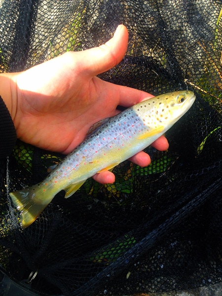 Ein paar Meter weiter entlang der Mauer konnte ich dann,kaum zu glauben aber wahr die erste Bachforelle dieses Jahr überlisten.