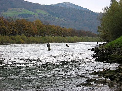 Als alle die Lizenzen hatten gings endlich zum Fischen. Plätze genug gabs ja, da heuer doch weniger Fischer als sonst kamen. Die meisten von unserem Forum stiegen bei der Nonntalerbrücke ein und fischten flußab.