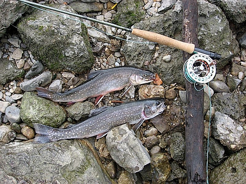 Als ich dann später wieder Richtung Nonntalerbrücke ging kam mir auch schon der APU ( Andi unter, der dann auch schon 2 schöne Saiblinge vorweisen konnte- Auch die anderen fingen durch die Bank schöne Fische. Der Nikolas fing eine wunderschöne Äsche und der Herbert unter anderem eine gut 45 cm Regenbogenforelle.