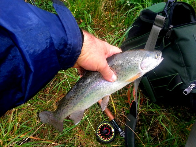 Aber meist kommt es ja anders als erwartet. Die Fische hatten an diesem Tag wirklich viel Einsehen mit uns und so fing ich in gar nicht langer Zeit gleich vier schöne Regenbogenforellen zwischen 35 und 40 cm.
