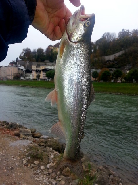 Ich ging runter zum Mozartsteg wo ich heuer schon recht gut fing. Ich hatte ja nicht so große Erwartungen da doch etwas höherer Wasserstand war und etwas Schneewasser dabei war.