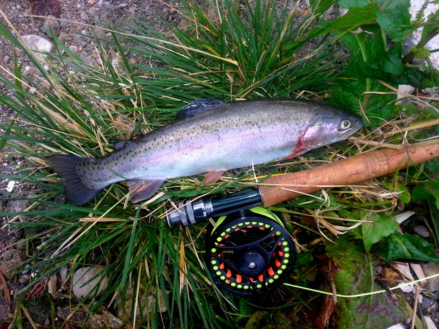 Aber meist kommt es ja anders als erwartet. Die Fische hatten an diesem Tag wirklich viel Einsehen mit uns und so fing ich in gar nicht langer Zeit gleich vier schöne Regenbogenforellen zwischen 35 und 40 cm.