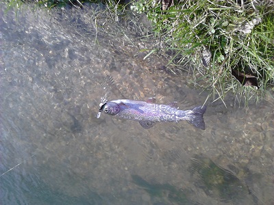 Meine Hoffnungen auf eine von der Saalach wilde, hereingezogene Regenbogenforelle erfüllten sich leider nicht, konnte aber im Unterlauf eine große, dunkle 45cm + Refo sichten, die ich aber nicht zum Biss verleiten konnte.