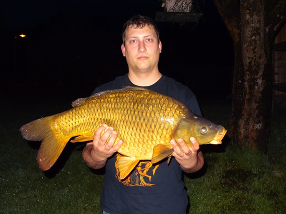 Aber es schien ihm die Kraft auszugehen, denn langsam aber sicher konnte ich ihn vom Schilf in Richtung Steg drillen. Weitere 5 Minuten und er drehte bei und die Keschermaschen umschlossen den makellosen 70 cm und exakt 8 kg schweren Schuppenkarpfen.