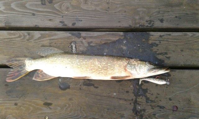An der nächsten Stelle probierte ich es wieder mit einem Gummifisch. Nach ein Paar Würfen konnte ich noch einen Hecht mit 59 cm überlisten.
