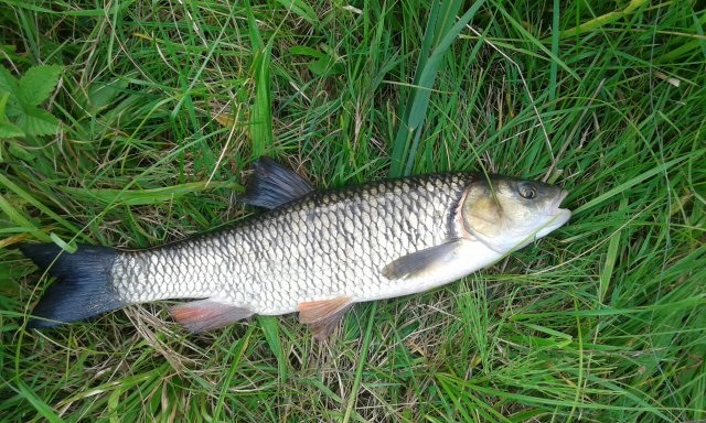 Ich begann mit einem kleinen Gummifisch, und konnte bald einen Aitel mit ca. 45 cm landen.