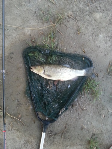 Mir fiel sofort auf das die zweite Rute gespannt war, ich hatte ihr aber einen Schnurbogen gelassen. Also zur Sicherheit nen Anhieb gesetzt und Fish on. Dieser war jedoch weit nicht so stark und so konnte nach 2min ein 40er Aitel gelandet werden.