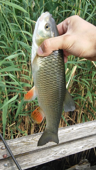 Drei Stunden später erneut ein Run. Diesmal war es ein halbstarker Schuppenkarpfen, 30 Minuten danach ging erneut der Bissanzeiger und ich konnte als Beifang eine schöne Aitel zum Landgang überreden. Es ist ewig lange her, dass ich einen solchen Fisch fangen durfte. Ich war total happy über diesen Fisch, auch wenn es nur ein Beifang war.